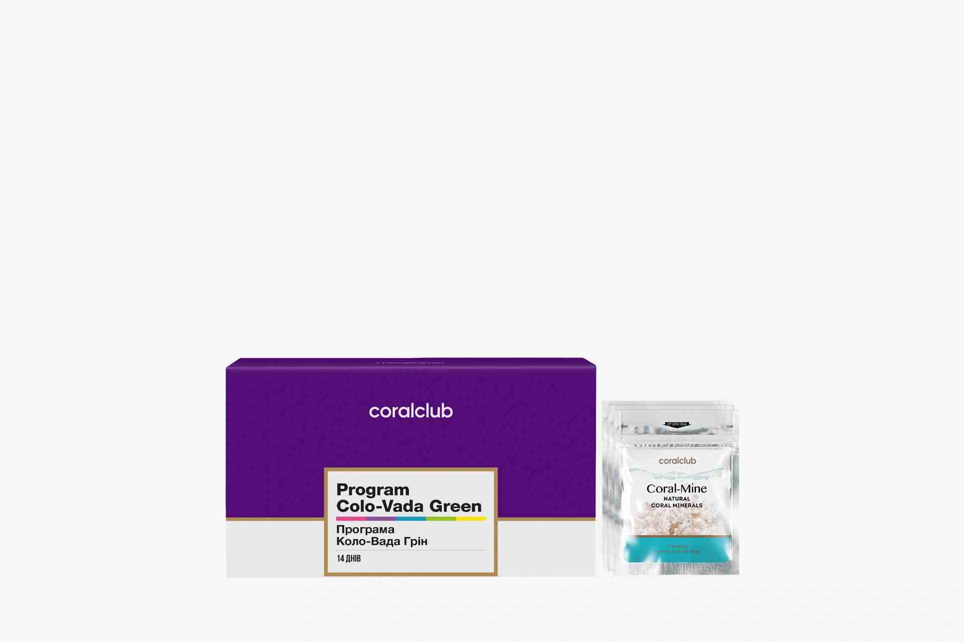 Набір із програми Colo-Vada Green і мінеральної композиції Coral-Mine для максимально ефективного очищення організму та оптимізації обміну речовин.